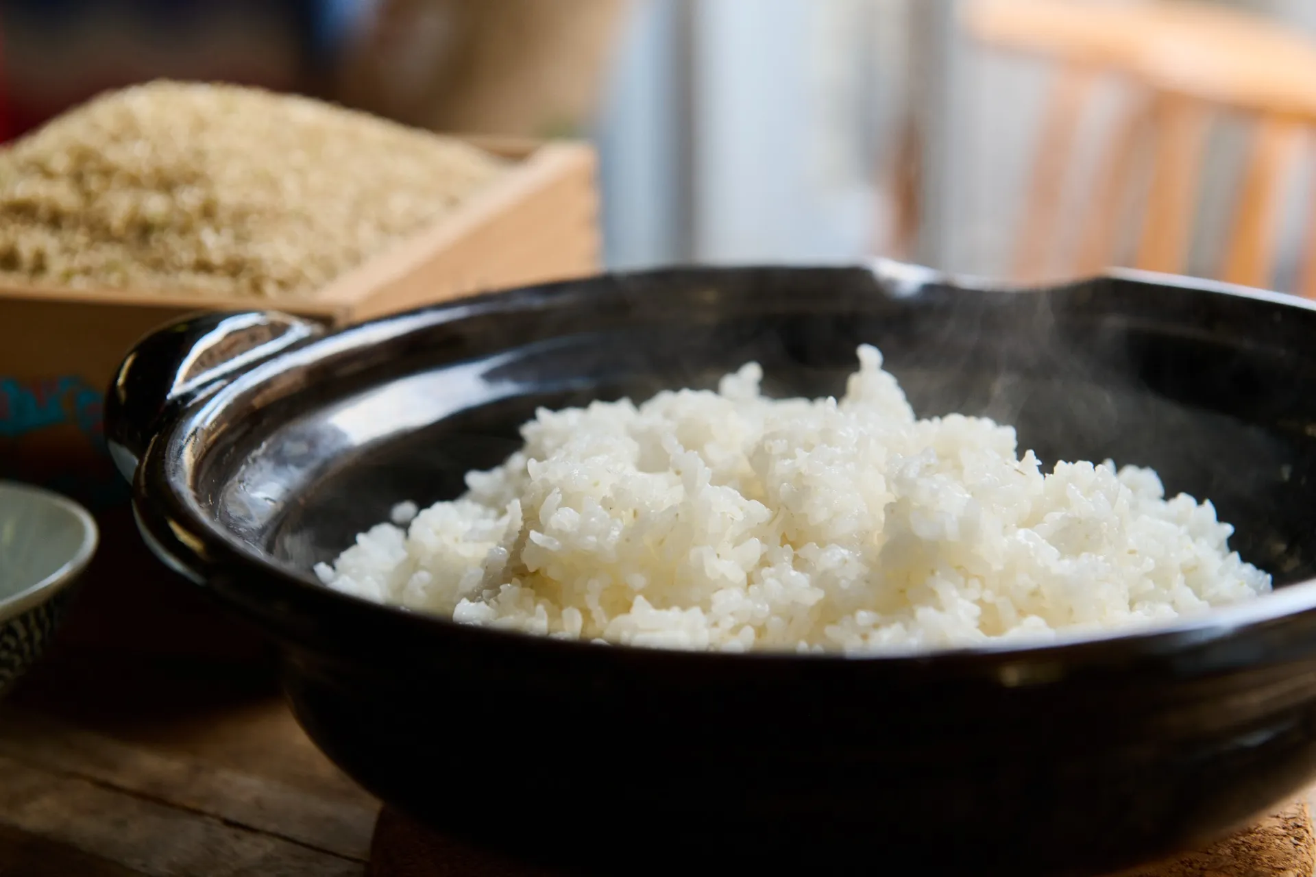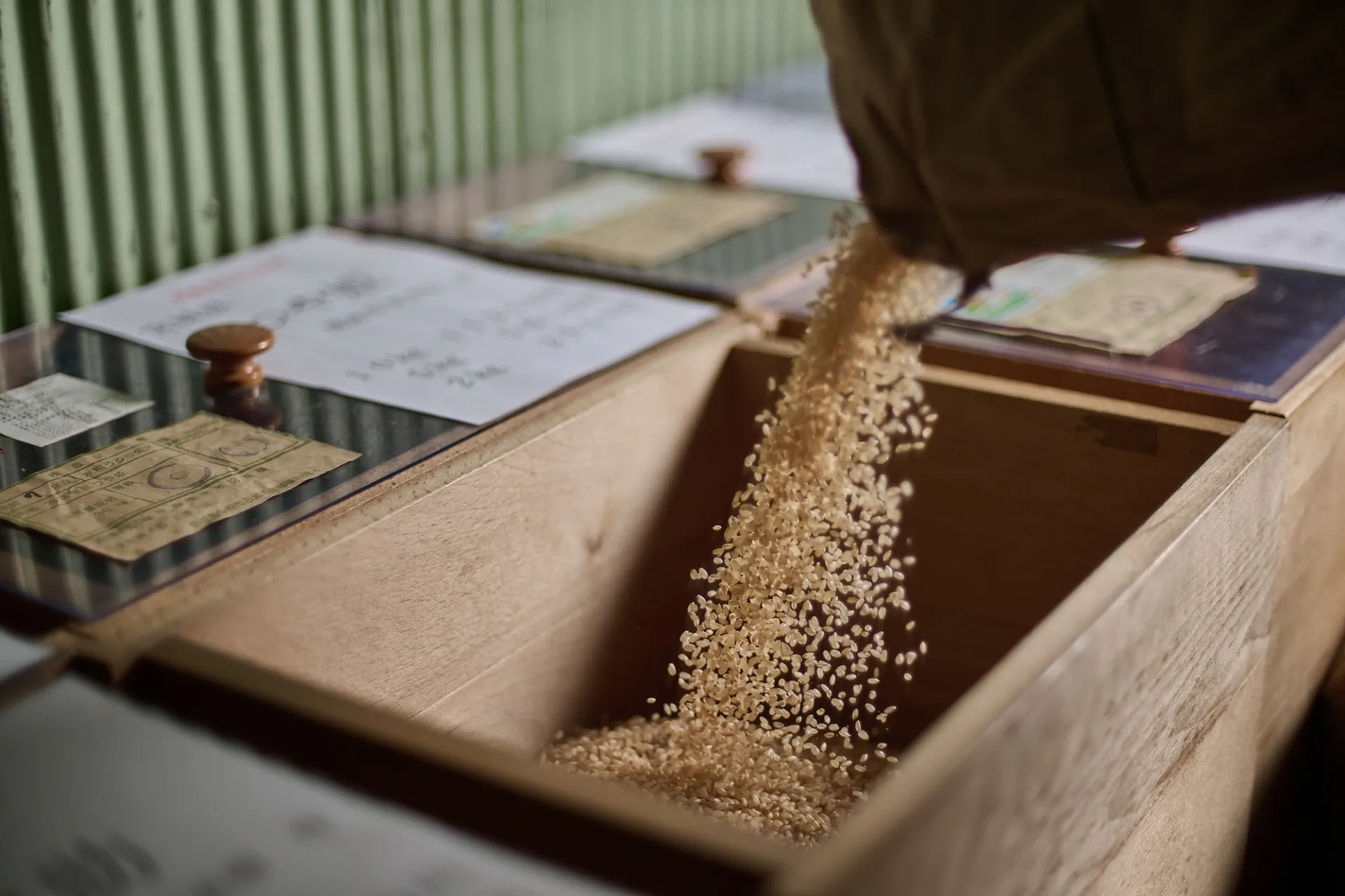 お米とお酒が旨い酒屋を目指し、農家直送のお米を取り扱っています。お米の旨さには新鮮さや水分量が深く関わっております。精米したばかりのお米は鮮度がよく、水分もしっかりと含まれているため、お米の甘さや旨味などがしっかりと味わえるふっくらとした状態に炊き上がります。仕入れた玄米をより良い状態で味わっていただけるよう、店頭で精米しながら販売しております。